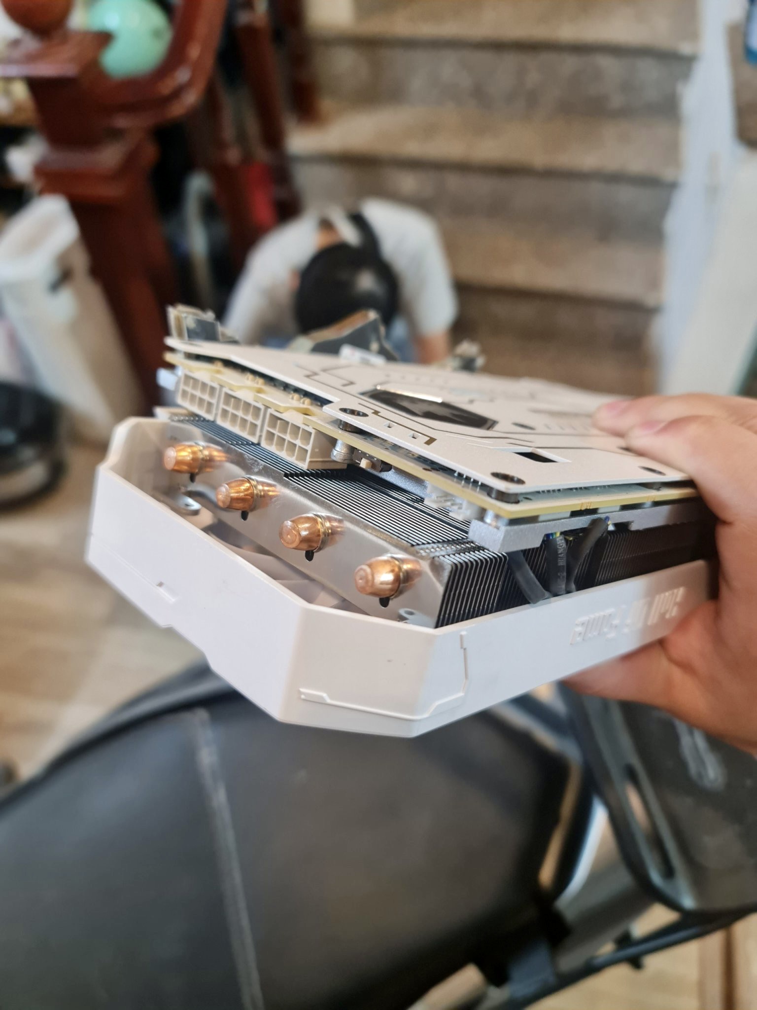 RTX 2080Ti 11GB GDDR6 HOF được thiết kế với tông màu trắng chủ đạo, toát lên vẻ đẹp thuần khiết. Sử dụng 3 quạt làm mát có kích thước lớn được thiết kế để đem lại luồng gió tối ưu xuống lớp tản nhiệt bên dưới. Đảm nhiệm việc tản nhiệt cho bộ xử lý đồ họa là 1 lớp tản nhiệt lớn với 6 ống dẫn nhiệt lớn giúp tăng tốc độ dẫn nhiệt lên mức tối đa.