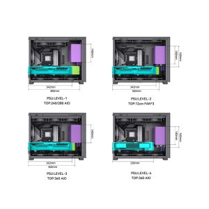 | Hệ thống làm mát: Phía trên: 120mm*3 hoặc 140mm*2 Phía sau: 120*1mm Phía dưới: 120mm*3 hoặc 140mm*2 Phía trước: 120mm*1 (nguồn điện 14 cm, giá đỡ nguồn điện ở mức đầu tiên) |